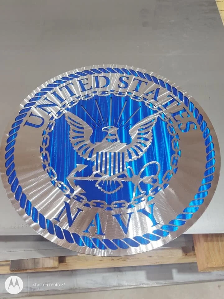 Image 1 of 2 Image 2 of 2 US Navy from $135.00 All made with 2 layers , 14 gauge metal18" 135.0024" 240.00Plus shipping size: Select size 18" 24" color: Select color blue natural distressed style: Select style with backplate Add To Cart Added! All made with 2 layers , 14 gauge metal18" 135.0024" 240.00Plus shipping